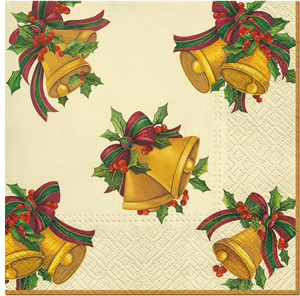 Vánoční ubrousek se zlatými zvonky Vánoční ubrousek je krásným doplňkem svátečního stolování. Motiv tradičních vánočních zvonků se zelenými lístky cesmíny, červenými bobulkami a barevnou stuhou vnese do vašeho domova kouzlo adventního času. Ubrousek je vyroben z kvalitního třívrstvého papíru, který zajišťuje vyšší odolnost. Skvěle poslouží při decoupage, scrapbookingových projektech nebo výrobě originálních dekorací, kde vynikne jeho detailní vánoční motiv. Motiv: zvonky Rozměr: 33 × 33 cm POČET UBROUSKŮ V BALENÍ: 20 ks Uvedená cena je za 1 balení (20 kusů).
