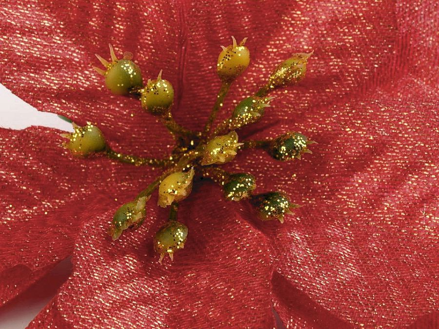 [Vánoční hvězda] s vetkanými lurexovými vlákny je okouzlující díky svého jemného třpytu.