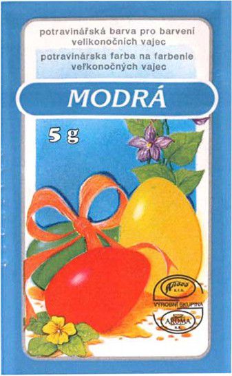 Jeden sáček obsahuje 5 g potravinářské barvy k obarvení velikonočních vajíček na modro. Barva nese označení Český výrobek
