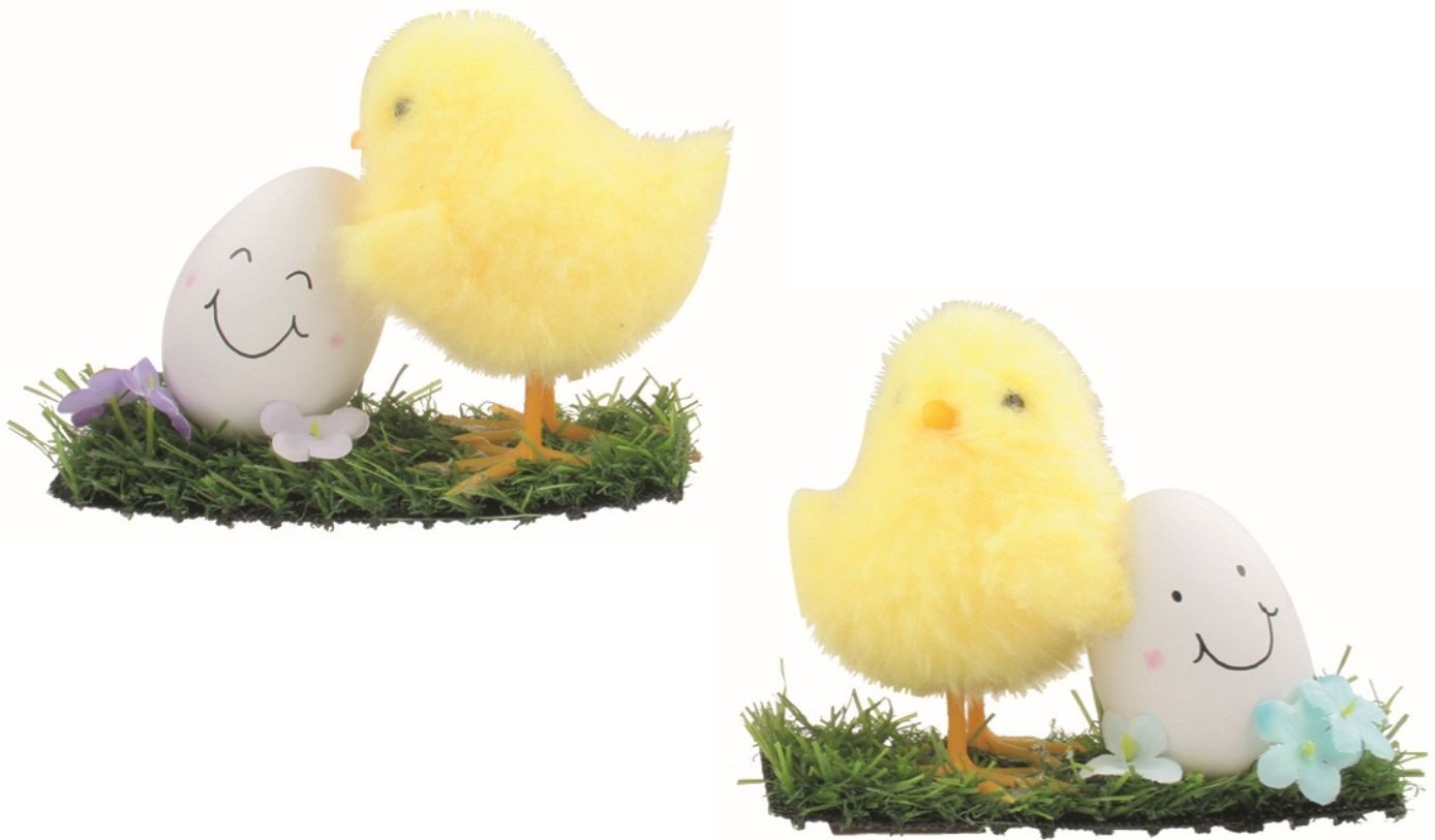 Popis Velikonoční kuřátko se smajlík vajíčkem na louce, žluté, 12 × 9 × 4 cm