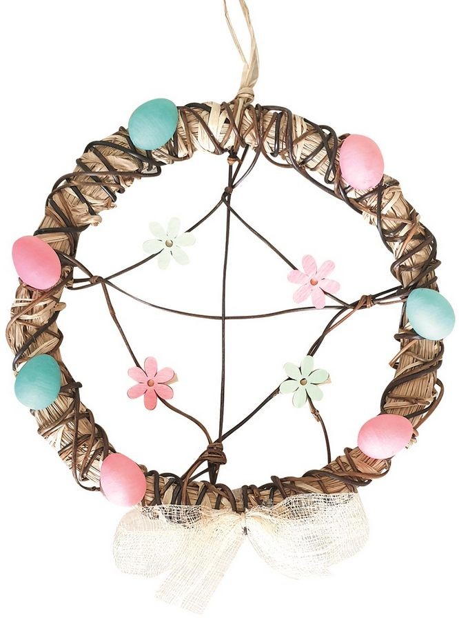 - Věnec s vajíčky a dřevěnými květinkami krásně ozdobí Vaši stěnu či dveře.