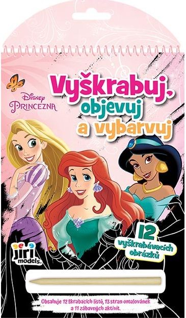 - Titul obsahuje 56 stran plných škrabacích obrázků Princezen, omalovánek a zajímavých informací a dřevěné rydlo k vyškrabávání.