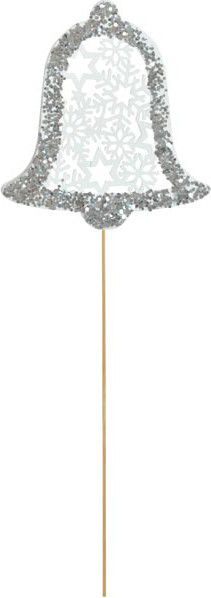 Zápich zvonek dřevo bílá s glitrem 7,5cm/35cm 8886107