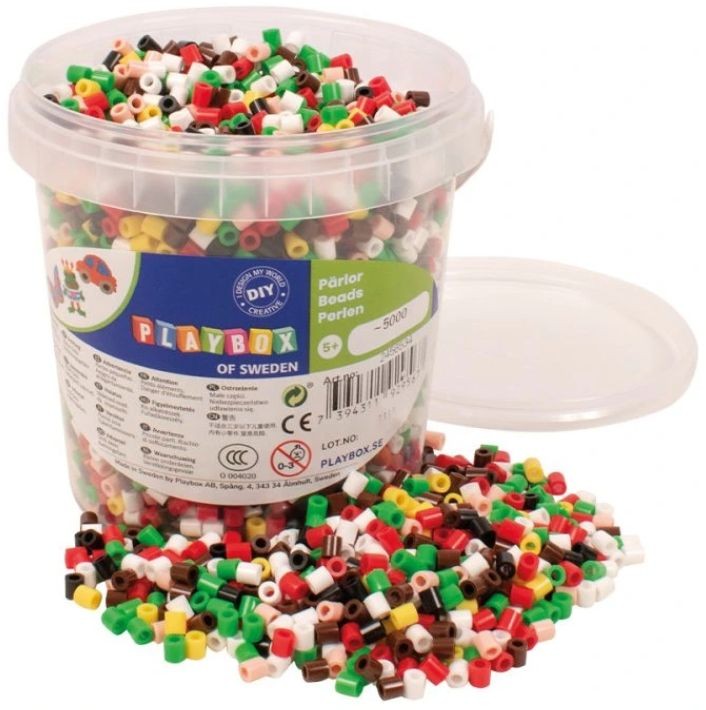 Zažehlovací korálky v praktickém kyblíku (12 x 11 x 12 cm)