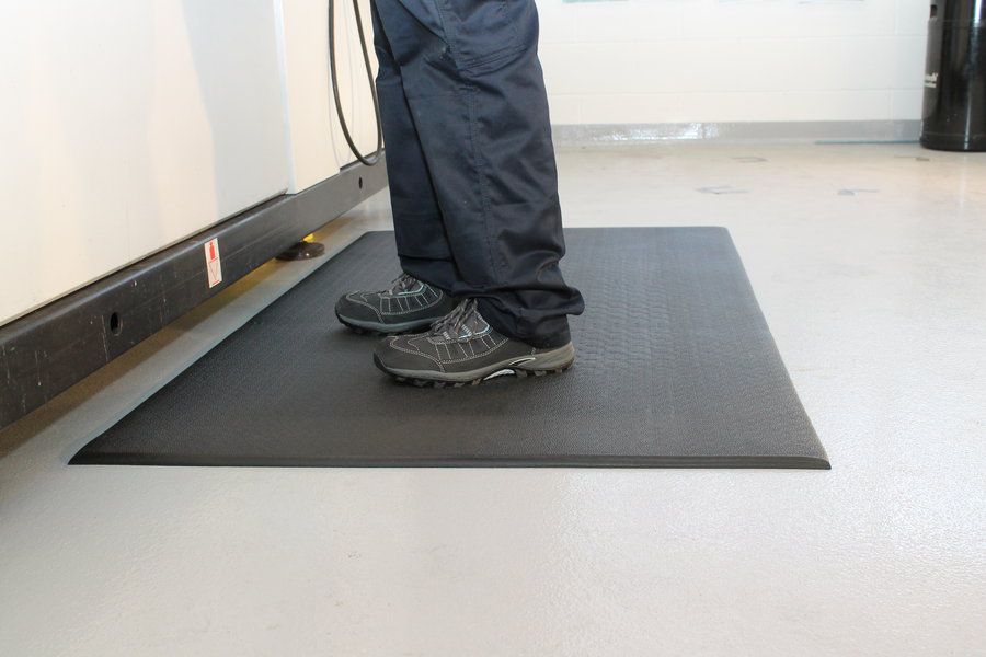 Rohož izoluje pracovníky od studené betonové podlahy a zároveň zamezuje únavě díky své výšce a použitému pohodlnému materiálu.