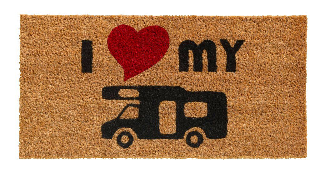 Popis Kokosová vnitřní čistící vstupní rohož FLOMA Ruco I love my caravan - 25 x 50 x 1,5 cm