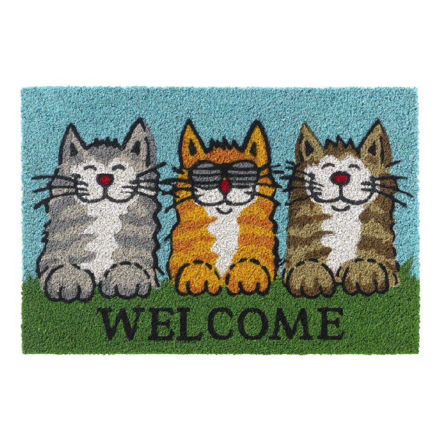 Popis Kokosová vnitřní čistící vstupní rohož FLOMA Ruco Welcome Cats - 40 x 60 x 1,5 cm