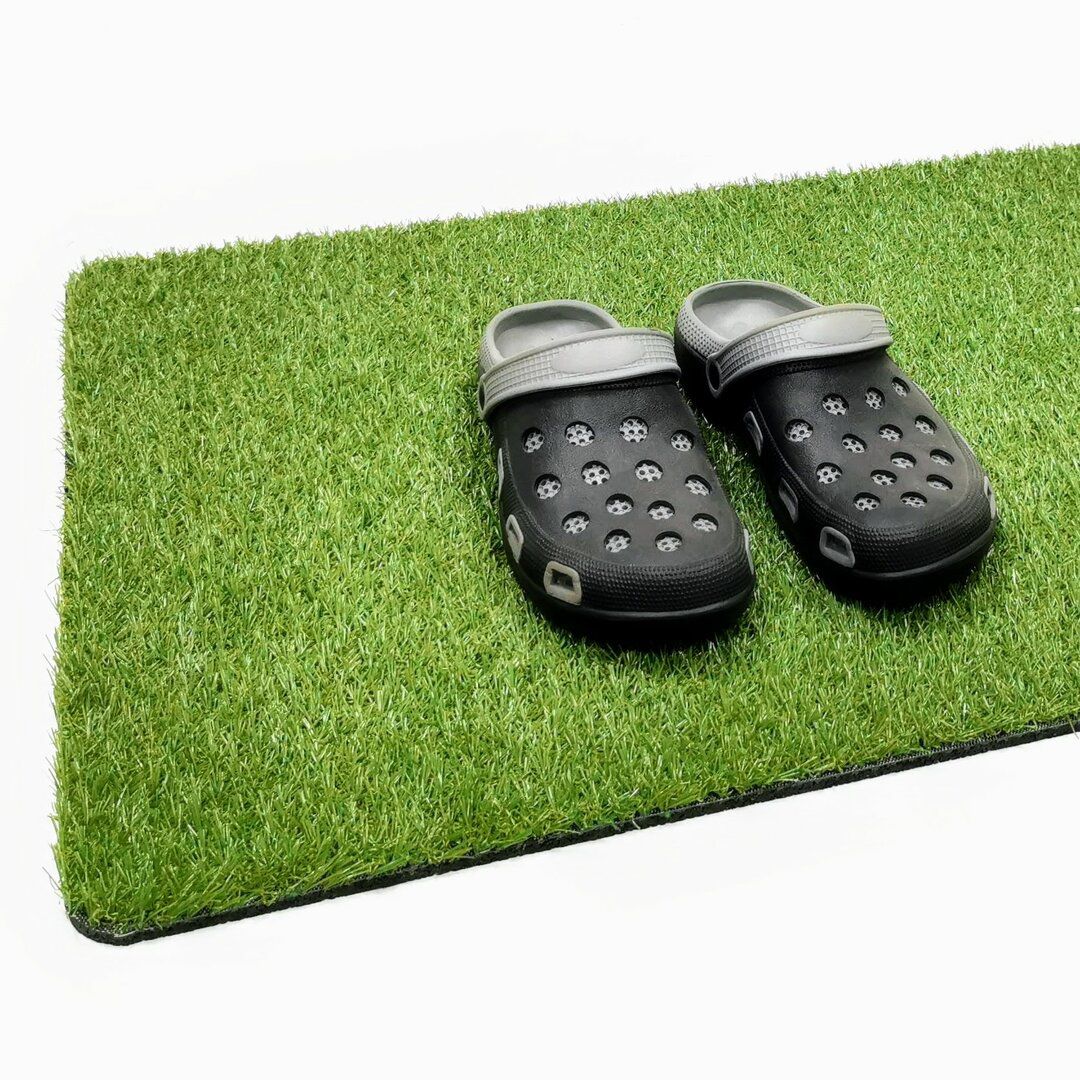 Gumová vstupní rohož z umělého trávníku přesvědčivě zaujme svým vzhledem opravdové trávy, přitom na pevnou gumovou základnu a tedy neklouže na podlaze. Je vhodná na balkon, terasu nebo pro kempování jako náhrada živého trávníku. Je odolná, nenáročná na údržbu a nepromokavá. Je příjemná na nášlap bosou nohou. Máte skoro pocit, jako když chodíte po skutečném trávníku.