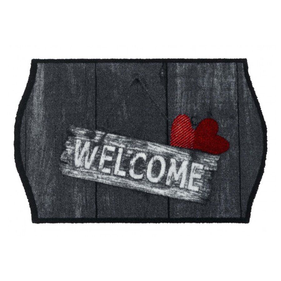 Popis Černo-šedá vnitřní čistící pratelná vstupní rohož FLOMA Welcome Hearts - 50 x 75 x 0,8 cm