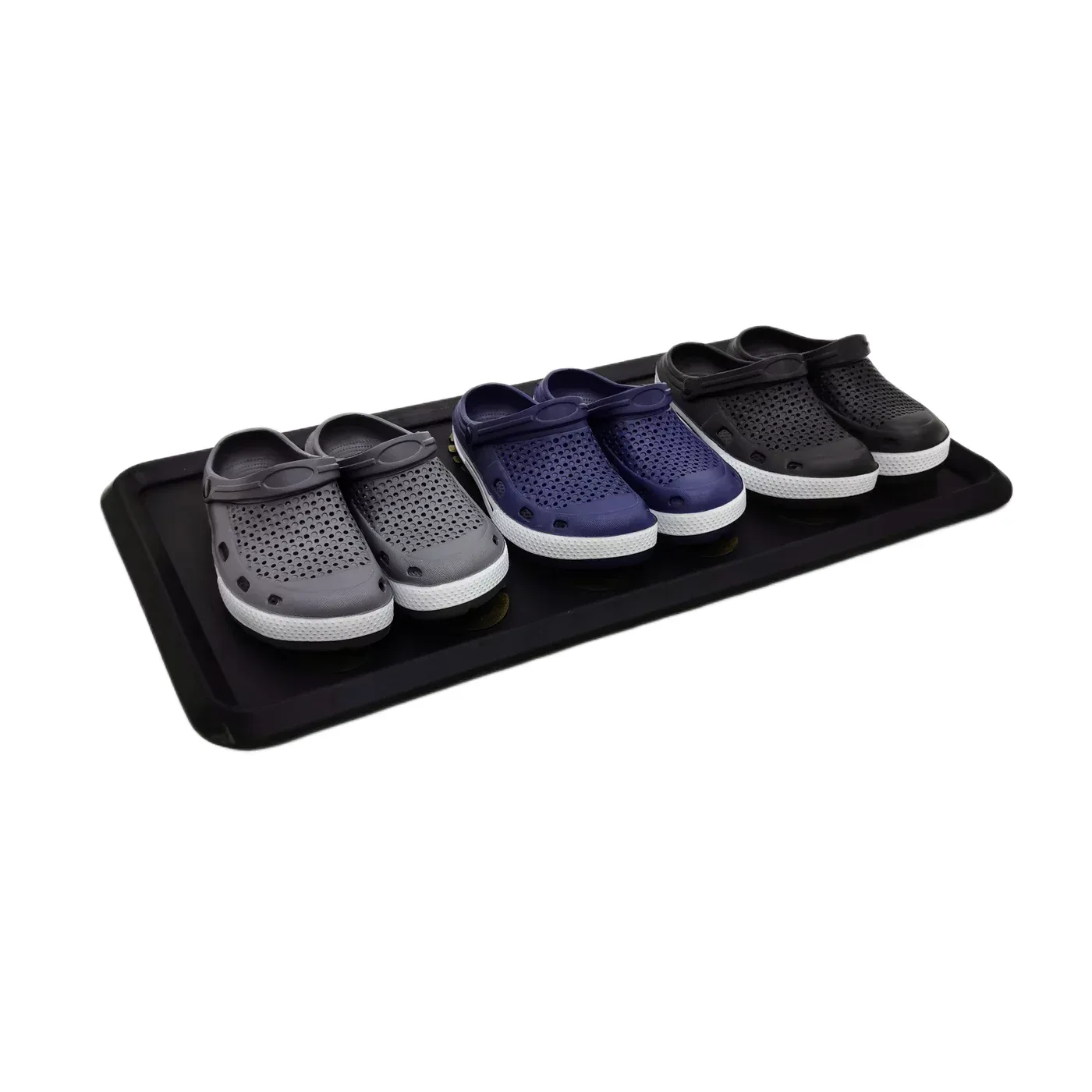 Gumový odkapávač na boty FLOMA Painted Shoes je stylová a praktická gumová podložka, která slouží k zachycení vody, sněhu a nečistot z obuvi. Díky vysokému okraji účinně zabraňuje vytékání kapaliny na podlahu a chrání tak interiér před vlhkostí. Design s barevnými obrysy bot dodává produktu moderní a hravý vzhled, který se skvěle hodí do domácností i komerčních prostor. Kapacita pro 3 páry bot zajišťuje pohodlné a organizované použití v každodenním provozu.