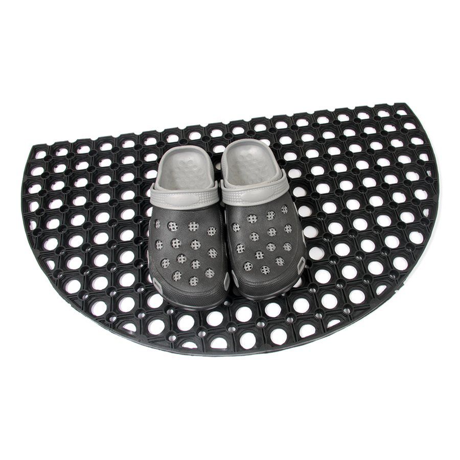 Popis Gumová venkovní půlkruhová vstupní rohož FLOMA Honeycomb Half Round - 45 x 75 x 1,6 cm