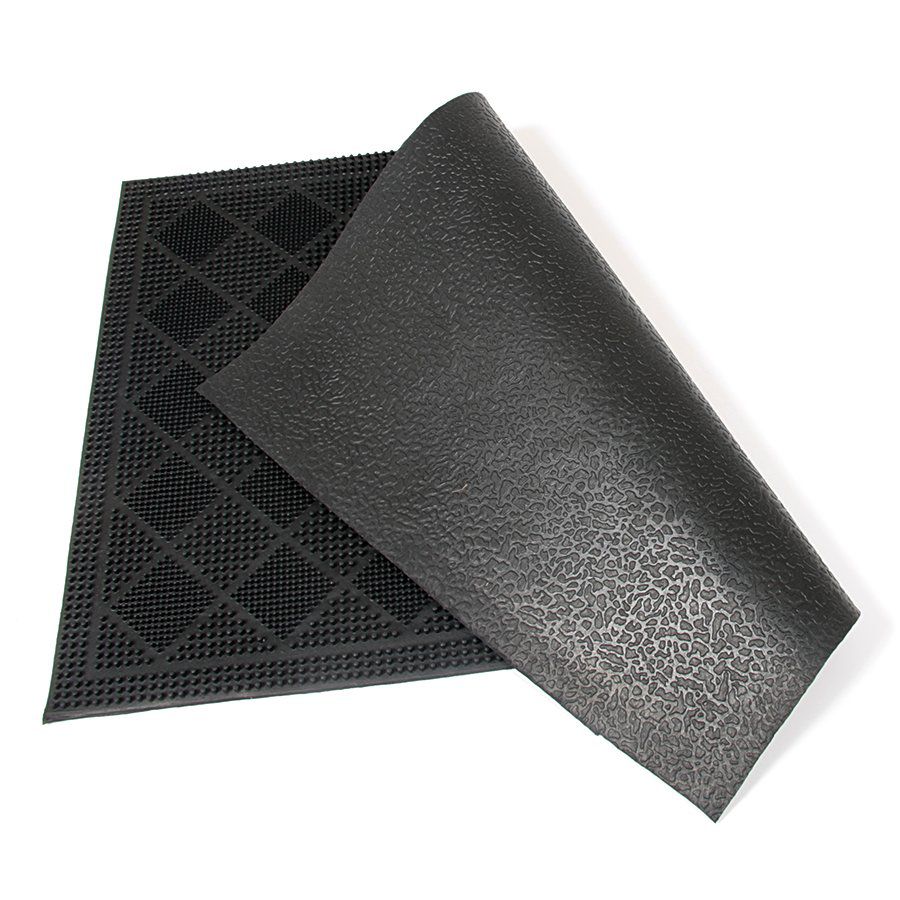 Malá gumová rohožka s kartáčovým efektem vhodná pro odstranění drobných nečistot - bahno, tráva, zbytky sněhu. Rohožka je nejčastěji před dveřmi bytů, rodinných domů či kanceláří. Díky svému designu často slouží i jako designový doplněk, popřípadě jako odkládací plocha pro mokrou obuv.