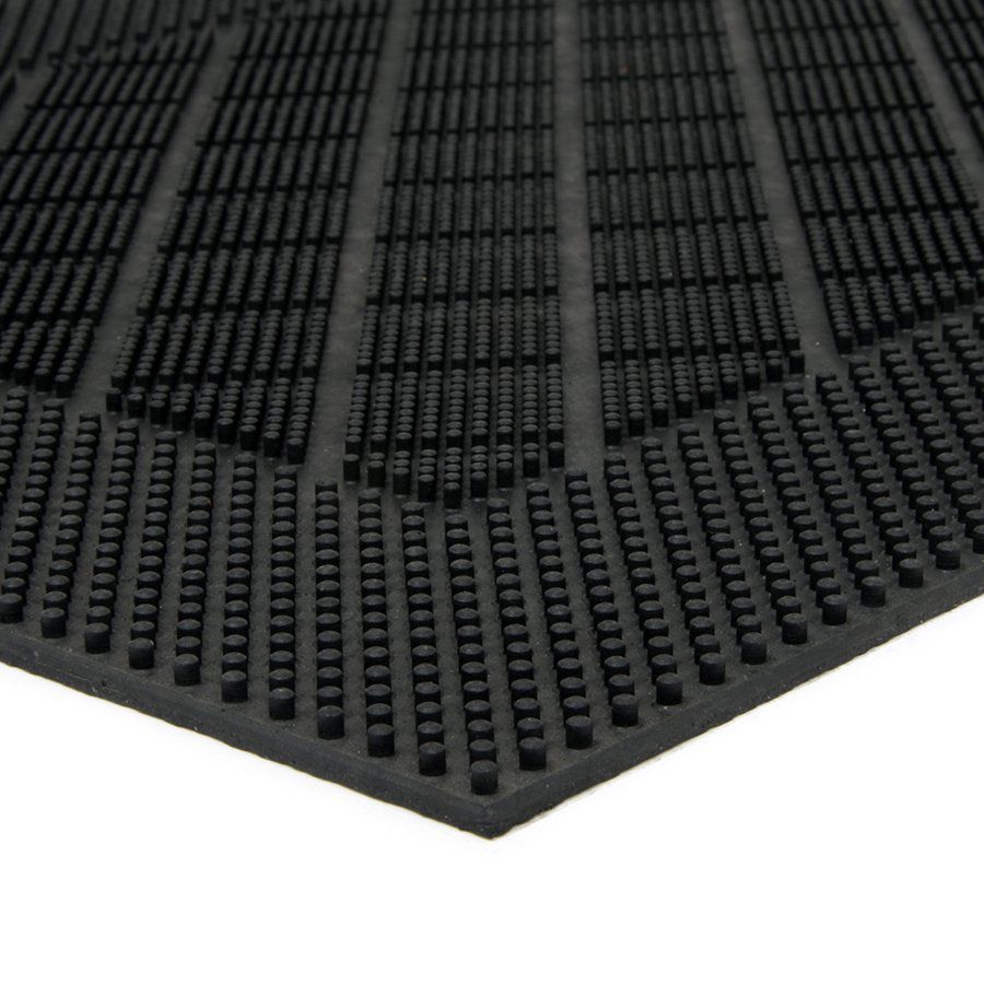 Malá gumová rohožka s kartáčovým efektem vhodná pro odstranění drobných nečistot - bahno, tráva, zbytky sněhu. Rohožka je nejčastěji před dveřmi bytů, rodinných domů či kanceláří. Díky svému designu často slouží i jako designový doplněk, popřípadě jako odkládací plocha pro mokrou obuv.