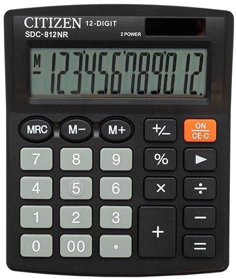 Citizen Kalkulačka SDC812NR, černá, stolní, dvanáctimístná, duální napájení