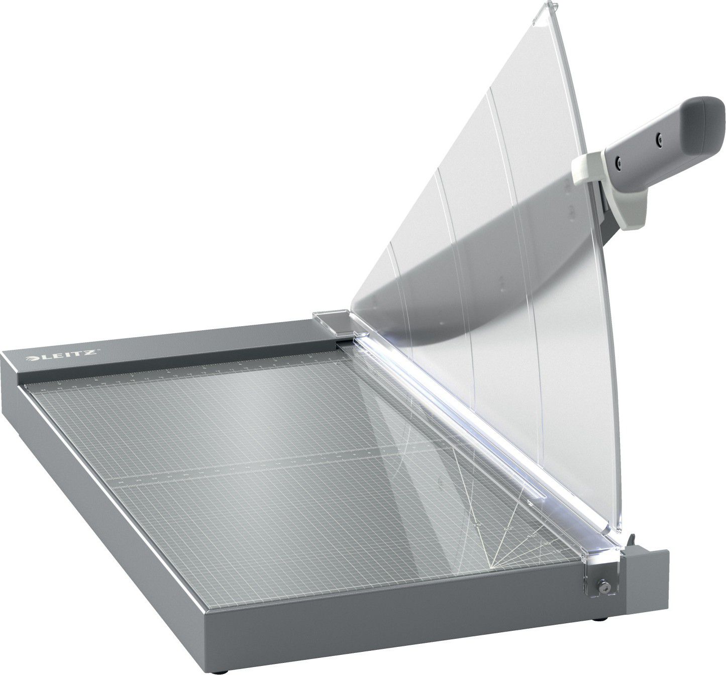 Přesná kancelářská řezačka papíru Leitz Office Pro A3 je ideální pro časté a objemné řezání papíru, štítků, fólií, fotografií, laminátů, karet a lepenky. Tato výkonná a robustní kancelářská řezačka papíru bez námahy a s rychlostí a přesností rozřeže až 25 listů papíru A3 (80 g/m2). Je vybavena jedinečnou technologií světla EdgeGlow, které osvětluje ostří čepele pro lepší viditelnost při řezání a maximální přesnost. Průhledná ruční svorka na papír pevně zajišťuje jeho přesnou polohu, ergonomická rukojeť umožňuje pohodlné a snadné řezání. Přesné, snadno použitelné vodítko metrického zarovnání nebo psaní a vymazání vlastních vodicích čar Bezpečnostní kryt čepele poskytuje celkovou ochranu a bezpečnostní západka zablokuje čepel, když se nepoužívá. Díky vysoce kvalitnímu noži z nerezové oceli, robustní pracovní ploše a prodloužené pětileté záruce máte jistotu, že tato řezačka papíru A3 bude přesně řezat po mnoho let.