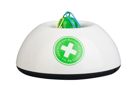 - Držák na spony ANTIBACTERIAL byl vyvinut s použitím nano-technologie stříbra, což znamená, že do směsi plastu je přimíchána speciální směs obsahující drobné částečky stříbra.