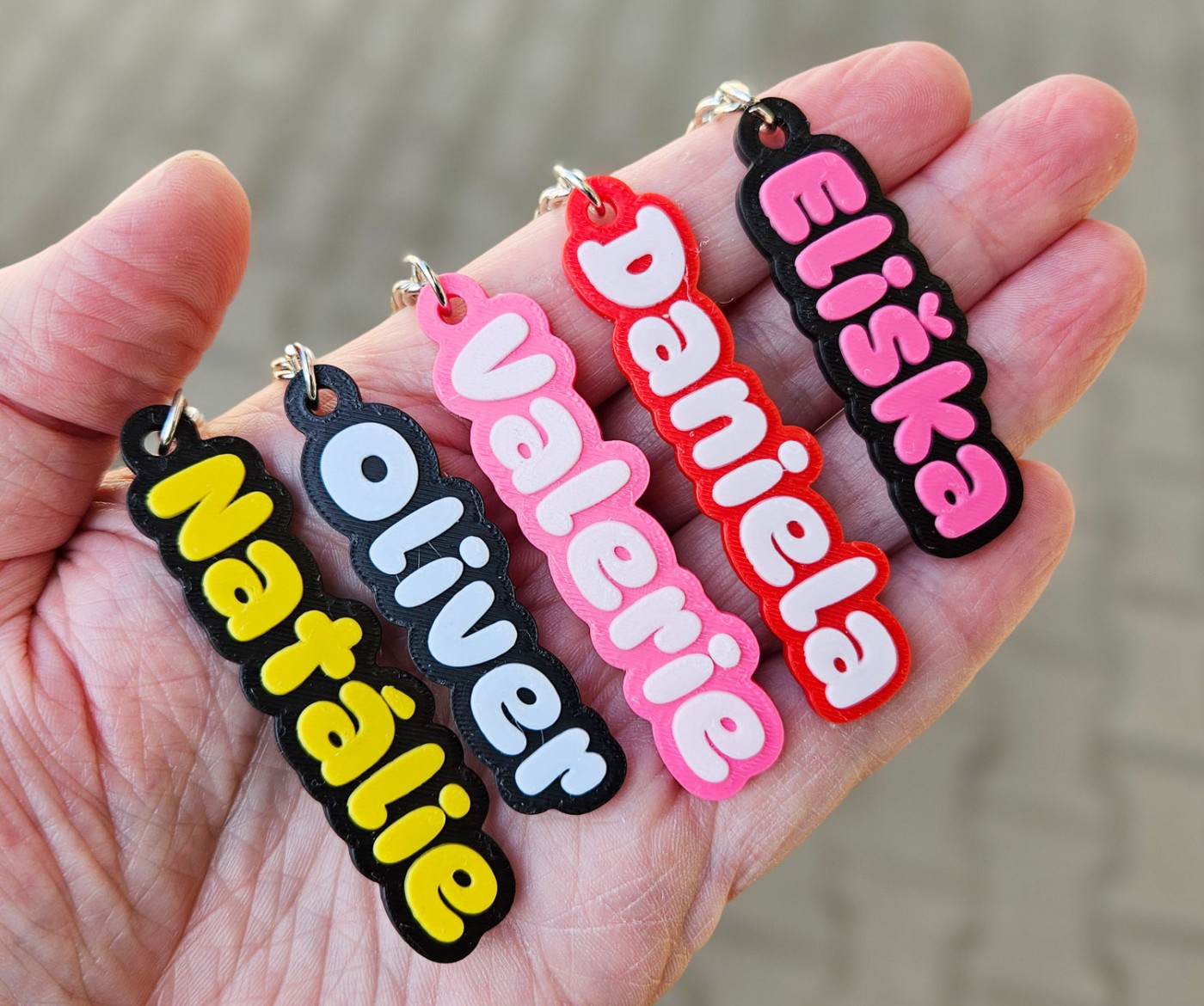 Dodejte svým klíčům osobitý styl díky klíčence se jménem na míru. Každý kus vyrábíme na zakázku přesně podle Vašeho přání, takže získáte jedinečný produkt, který nikdo jiný nemá. Skvěle se hodí nejen na klíče, ale i na označení batohu, bundy nebo aktovky. Délka 40-60 mm (podle délky jména).