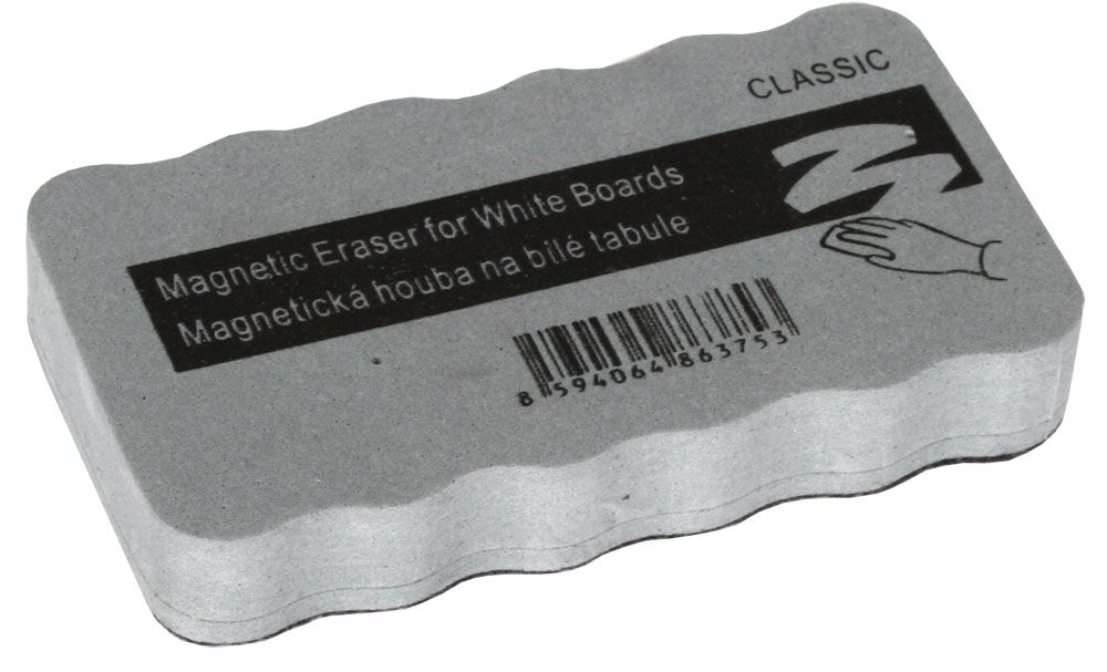 Unikátní magnetická houba pro stírání bílých tabulí a flipchartů. Bez nutnosti výměny čistícího povrchu. Čistí se vodou. Rozměr 105 x 55 x 28 mm.