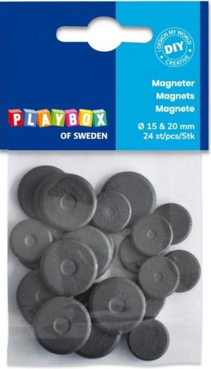 - Balení obsahuje 24 ks kulatých magnetů dvou různých velikostí a to Ø15 a Ø20 mm.